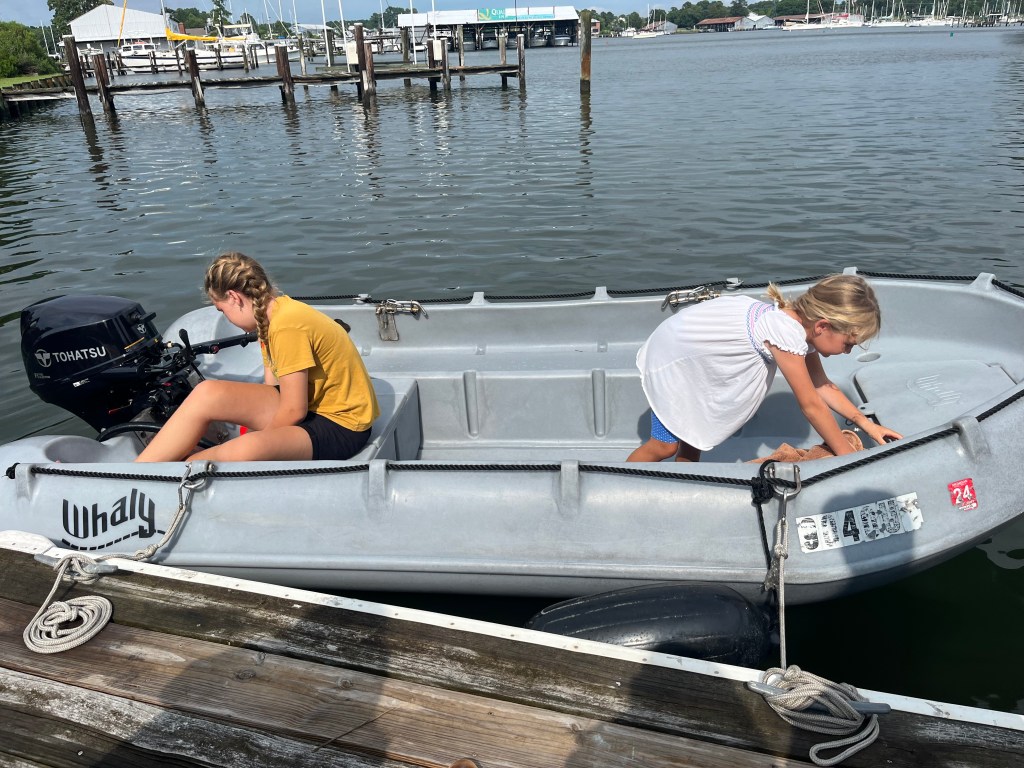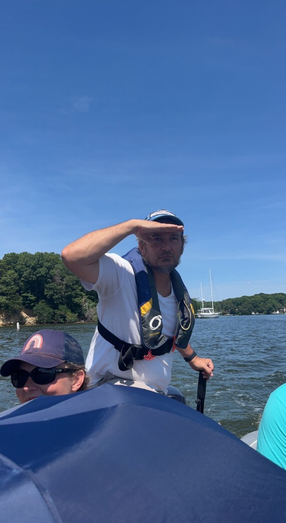Today, we went for a ride on Silver Linings large dinghy. All 7 of us fit comfortably! We traveled up Mill Creek. It was quiet with nice homes….and a lot of jelly fish in the water!