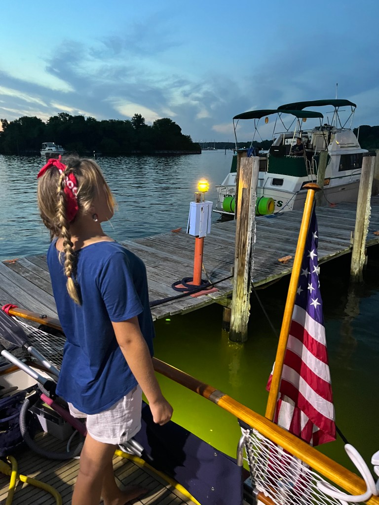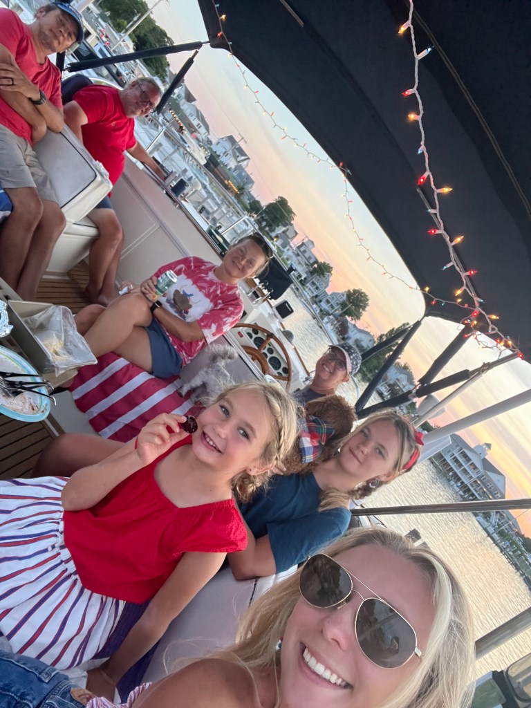 Midday, we watched a boat parade from the bow on Silver Linings. There was about 40 boats fully decorated with patriotic flags and people waving.