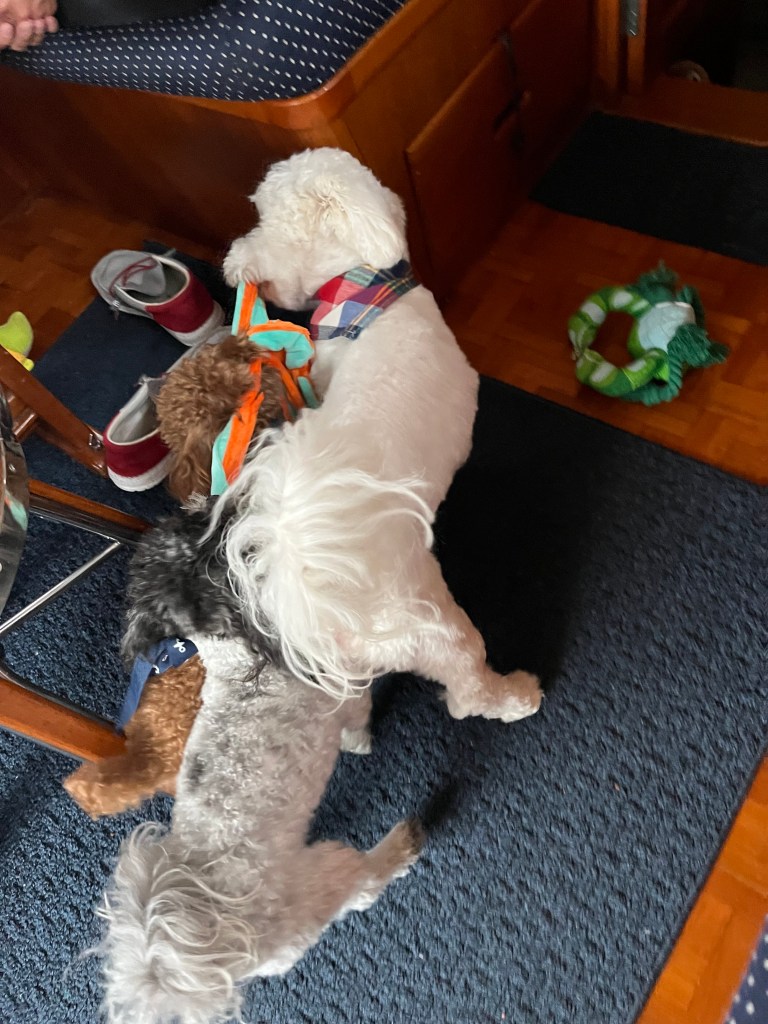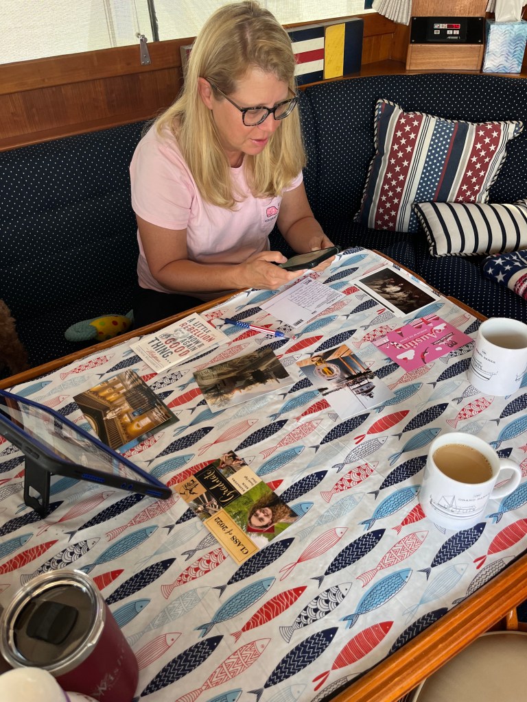 Gabe and Lizzy are live aboards a few slips down from us. They are so cute! Jen gave Lizzy a few tips on boat life she’s learned along the way and Kelly gave her a few storage ideas.