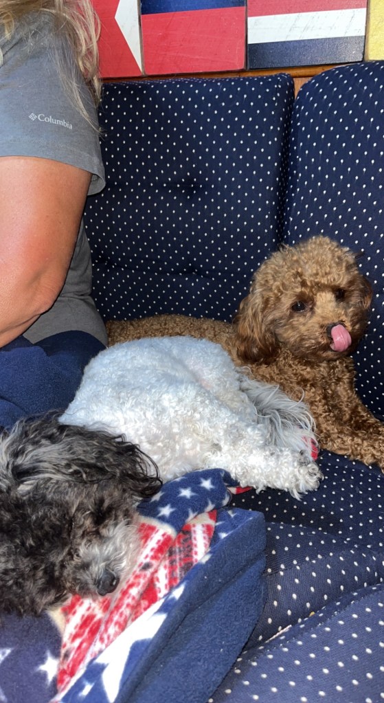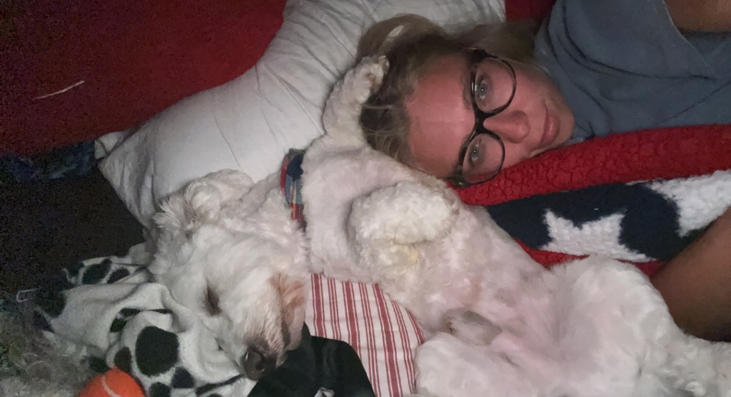 Puppies slept over in Jen’s room tonight. We have been watching Stranger Things on Netflix and Bonnie gets scared watching it with us so she got to sleep over in Jen’s room.