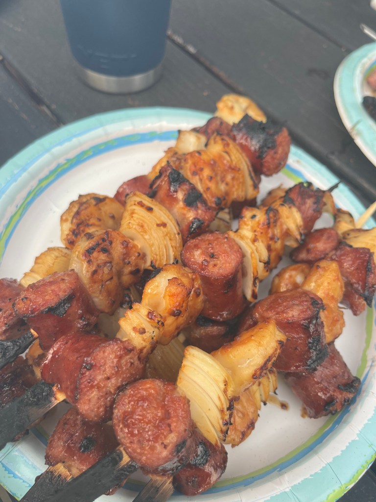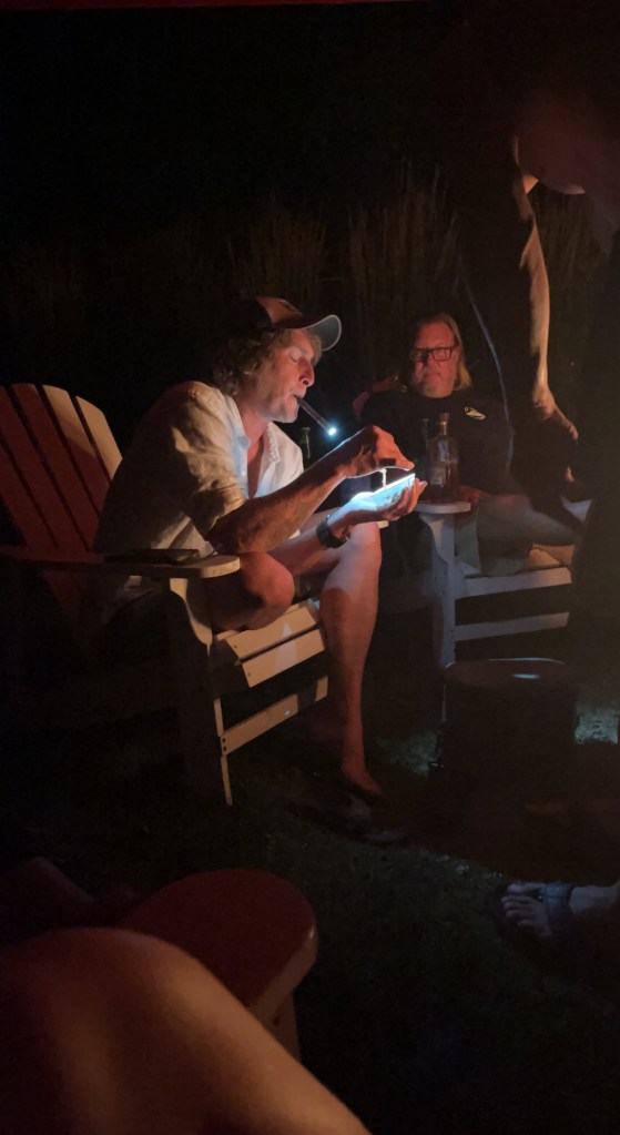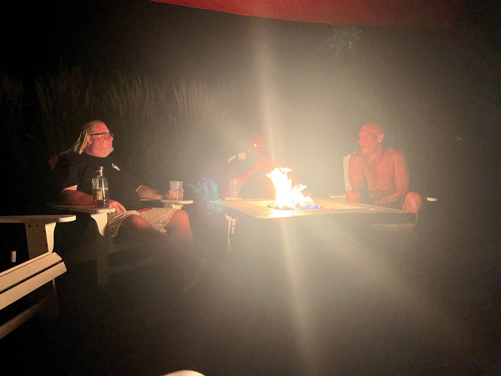 Mike and Mike Jr. came over Thursday and we grilled some steak and shrimp/sausage skewers. Food was great and the company was even better. Later in the evening we had a bonfire and Bo came to join us. He has a sail boat here in the marina. He was involved with the water gun fight at the pool earlier in the day as well.
