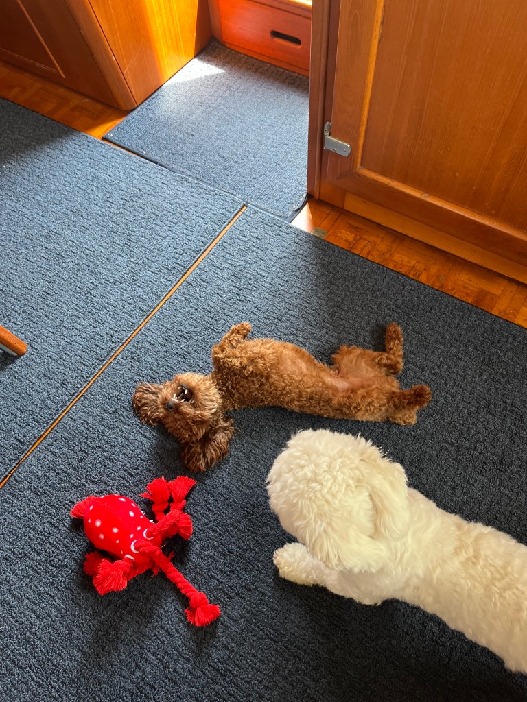 Jen and Kelly sewed up dog toys. The boys tear them up and play rough with them and we are constantly sewing them back together.