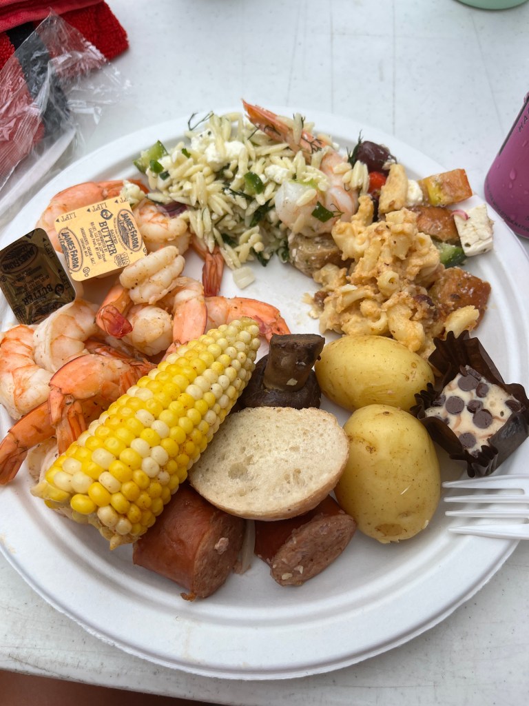 Our last night here the marina was hosting a “low country boil”. They had more free beer and wine. We had a few drinks called “Smash” from the Devils Backbone Brewing Company. They had a few flavors, and were very good. The marina hires a live band for the party, we enjoyed listing to them. We sat with all of our friends, and even made a few more. Unfortunately because of the rain the party was cut short. We ended up hanging out on Tom and Charlotte’s boat the rest of the night.