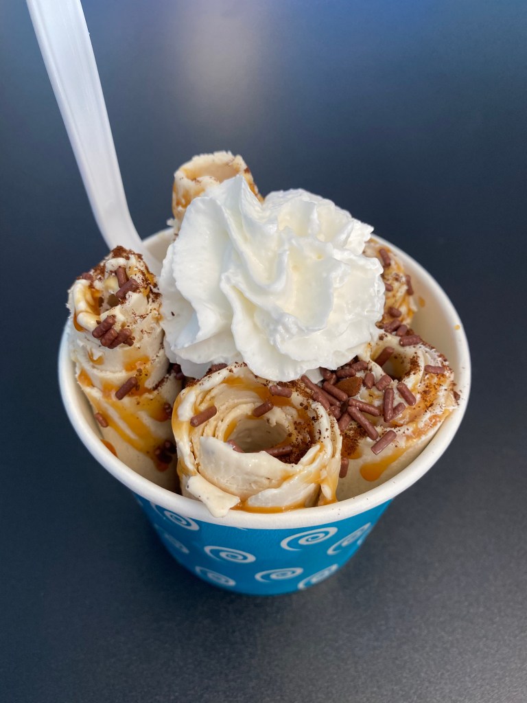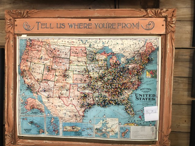 Jen and Kelly went for a walk and found a cute flea market, De France Antiques. There was a cool map that you could put a pin in to show where you were from. We placed our pins, in Texas and got fudge Raspberry Donut and Carmel Nut… very yummy!