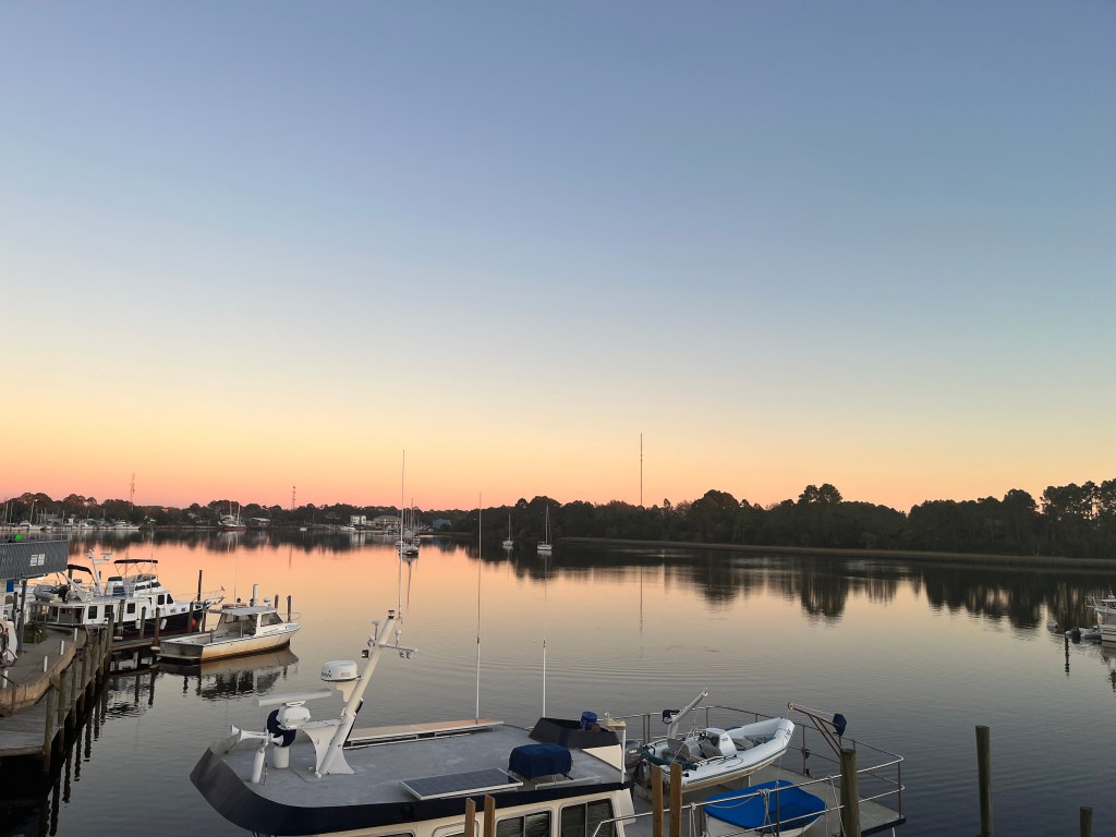 Jen and Kelly took the wagon to the grocery store for new provisions. The store is just across the street but actually a 10 min hilly walk due to our boat slip location. It is very strange shopping with a wagon vs. a grocery cart. Funny, no one looked twice at us.At 5pm, we met up with fellow loopers to discuss the crossing. We divided into groups based on 1. Day crossing, 2. Evening crossing and 3. The “elbow” route which is hugging the shore and stopping in 3 towns (Steinhatche, Cedar Key and Tarpon Springs). Jen brought name tags and Kelly brought a list of things to consider for safety and logistics. Our group agreed to meet at Dog Island at 5pm and use channel 68 for communication. We agreed to do an hourly check-in at the top of the hour. In total, our night crossing group totaled 9 boats – Wishes, In Custody, Silver Linings, CJ’s, North Star, Tug Lee Loo, Patriot, Northern Lights and Great Escapes.