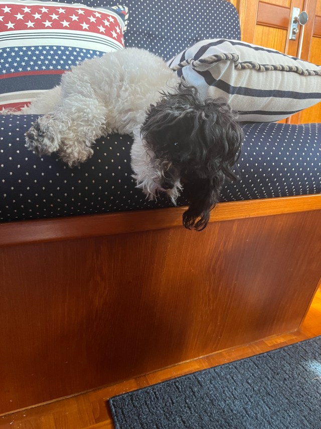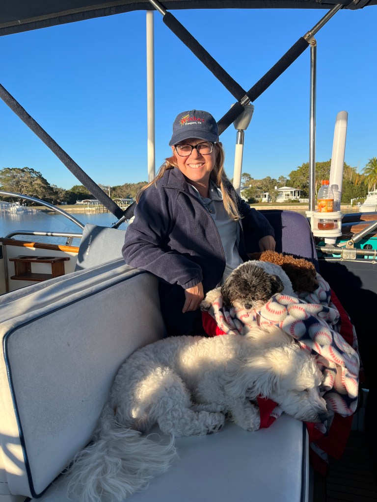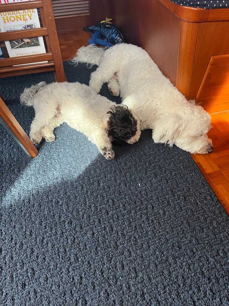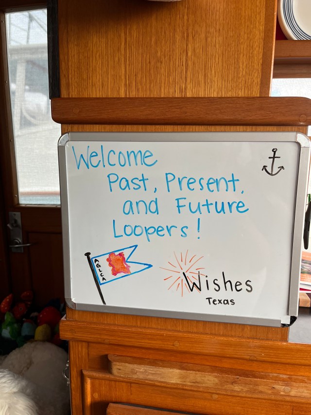 At the end of the day meetings, we participated in the looper crawl. Which is where past, present, and future loopers could tour past and present loopers boat. We gave tours of our boat all three days. Prior to the event Jen made Jello shots to pass out during the looper crawl… they were a hit. We put Bonnie and Teddy in doggy backpack carriers to keep them from being… pain in the butts and obnoxious puppies. The puppies and Harley were on their best behavior, and did very good all three days. It was lots of fun. Loopers loved our boat and it was fun meeting so many enthusiastic people.