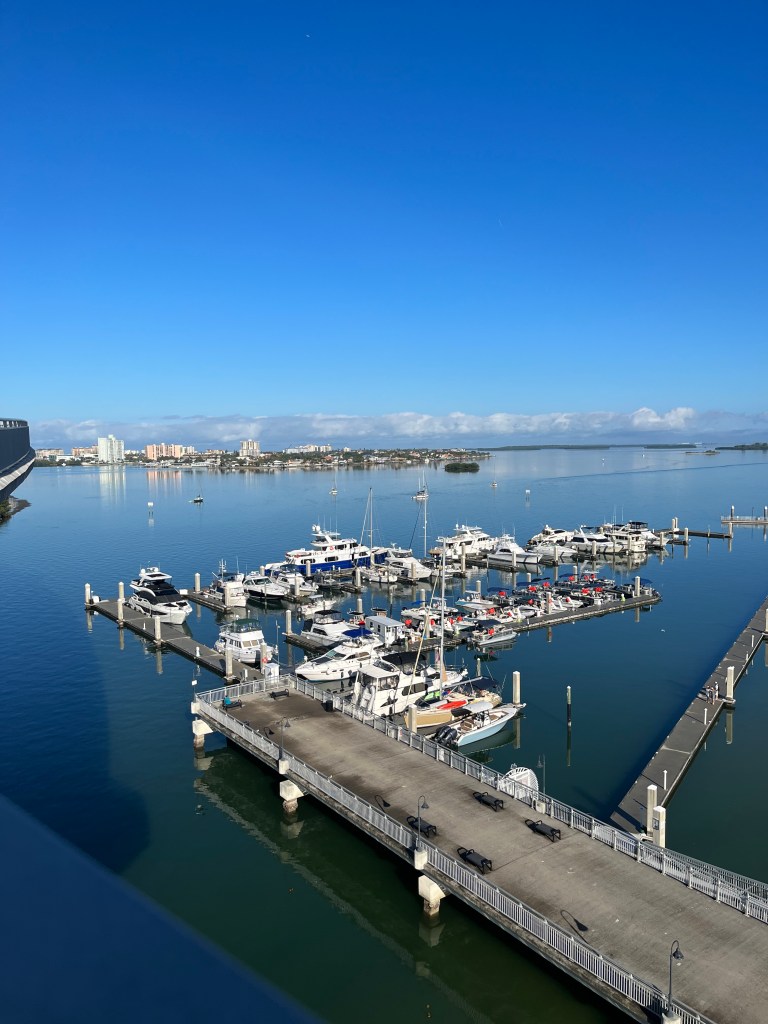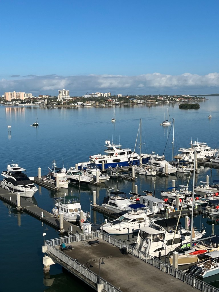 Jen started the day by going for a run around downtown Sarasota. There is a path that goes around the bay, with super pretty views of the boats in the mooring field.