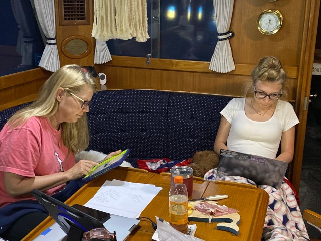 Jen and Kelly spent the day working on blog posts. The weather was chilly and windy, so we spent the day inside.