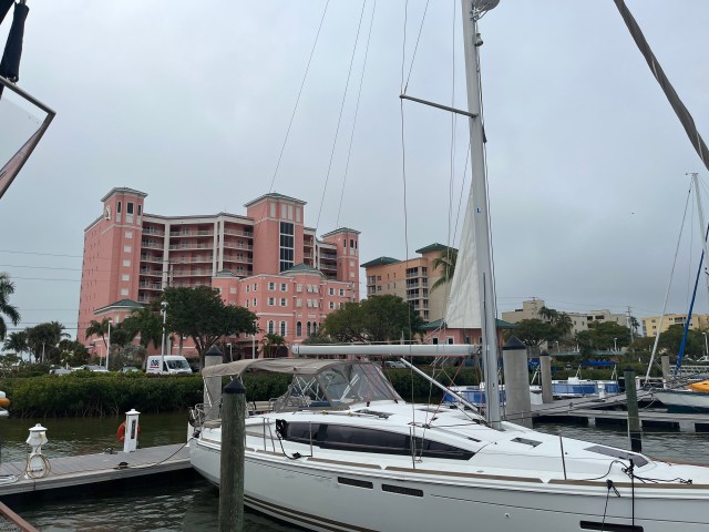 Pink Shell is a resort marina with pools, private access to the beach and restaurants. The weather is predicted to be chilly so we hope we will get use the amenities.