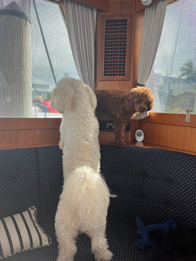 Mike spent the day working. The dogs spent the day running around the boat, and barking as people walked by.
