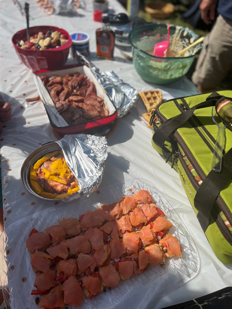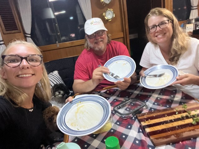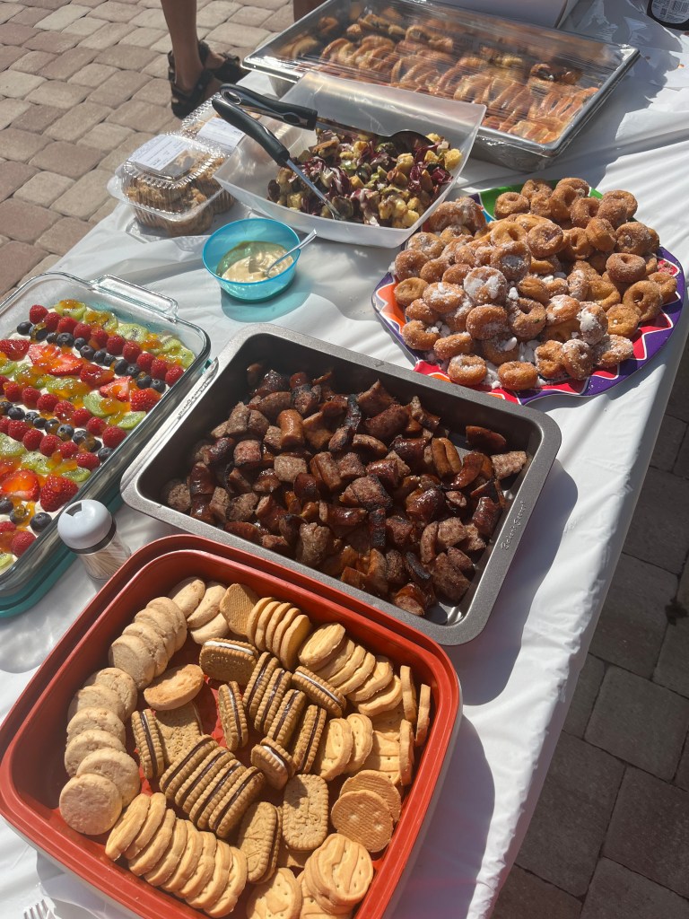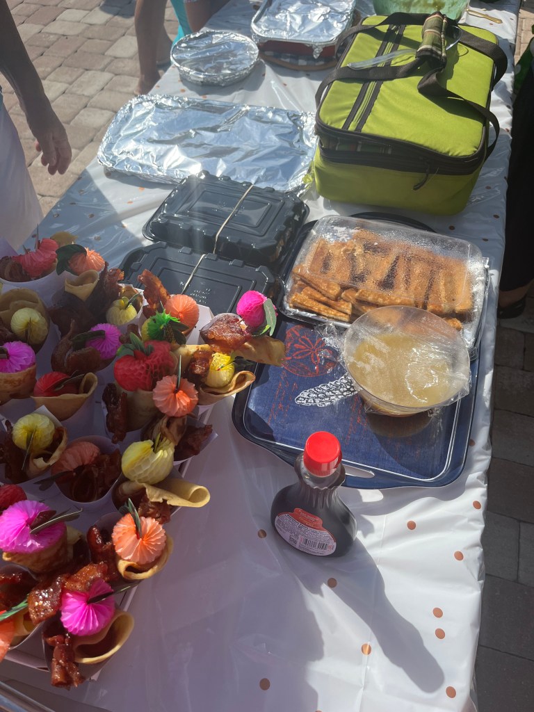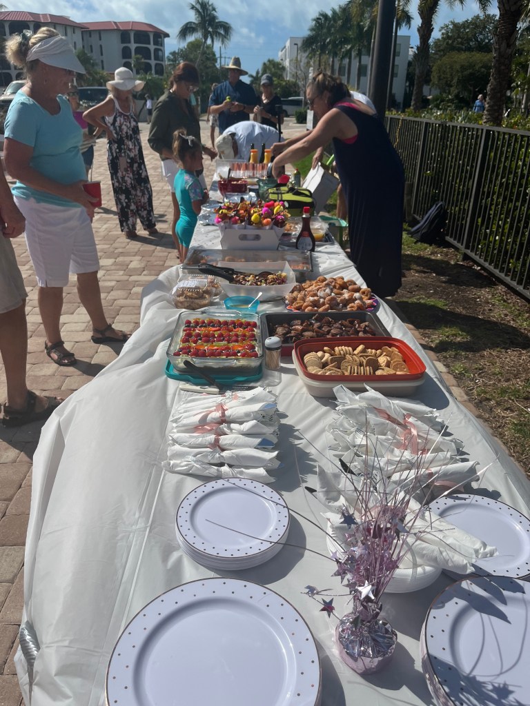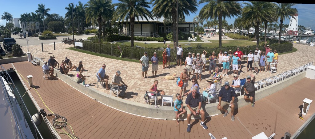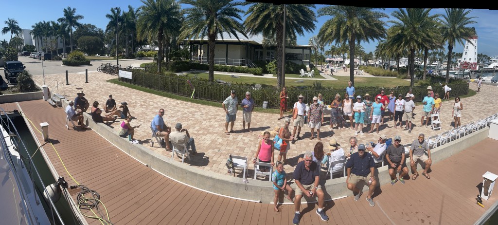 Today was the Day Light Saving Bruch at Faro Blanco. Mike made bacon and ham. Jen cut up a fruit salad. Everyone here at the marina makes such good food. We had donuts, waffles, crepes, sausage, pastries, fresh toast, locks, cheese eggs, and hash brown casserole. We have loved all the different parties and events at the marina.