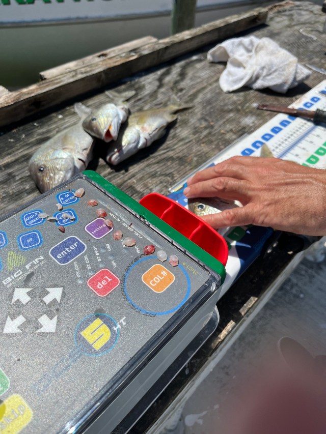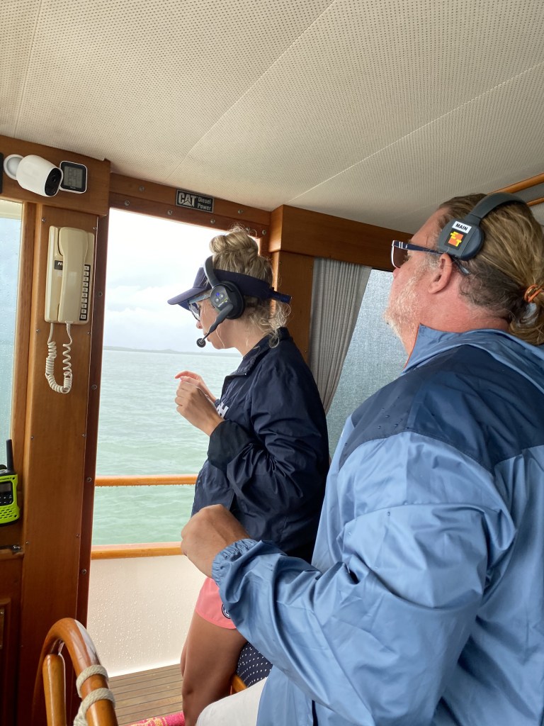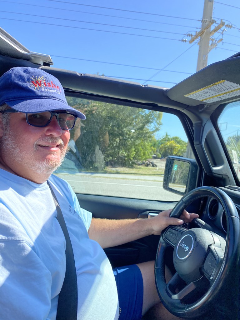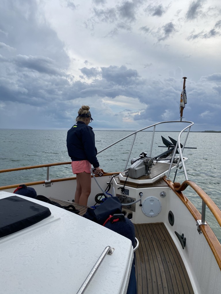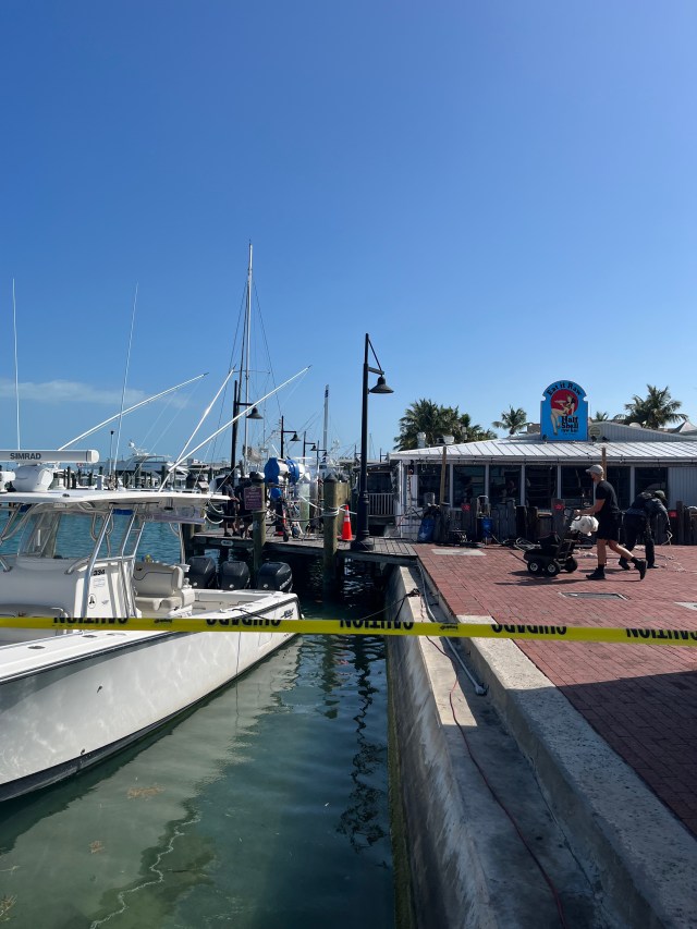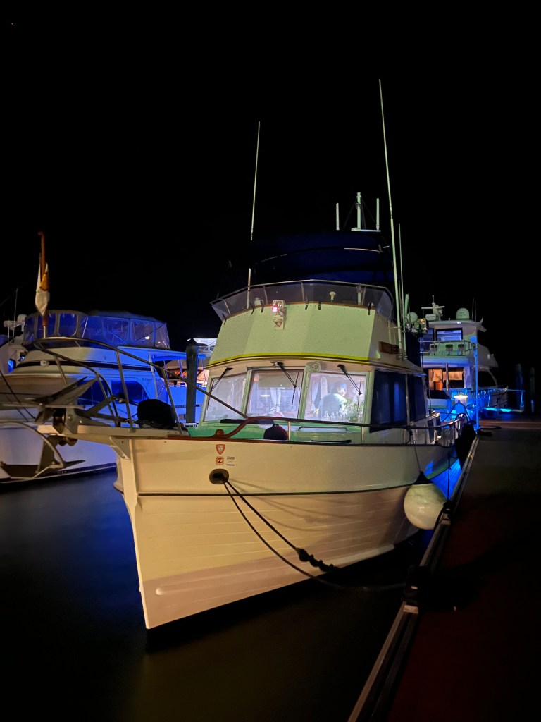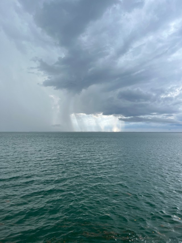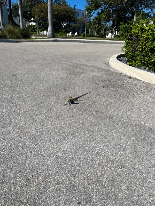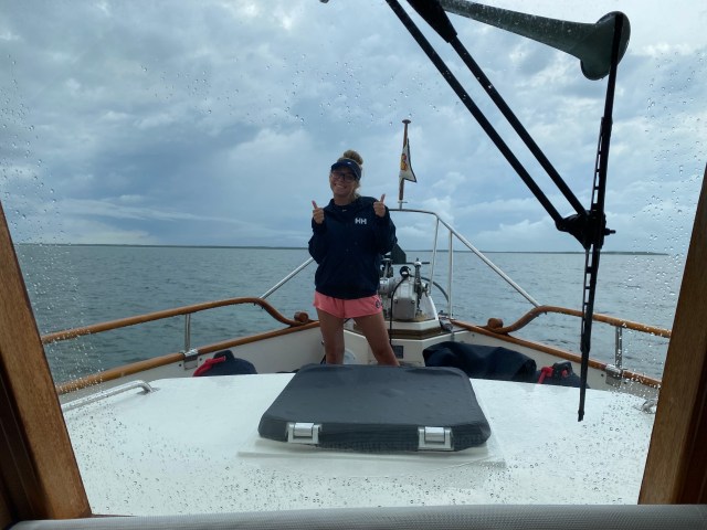 We left on Gulf side of the Keys and crossed under the #5 Channel Bridge and traveled on the Atlantic side. Just passed the Keys, we turned into the Card Sound. Weather was great in Marathon but it started to rain when we got close to our destination. The trip along the inter coastal from the Atlantic was a bit concerning. Our charts were showing shallow water on both sides of us and we had to carefully stay in a narrow channel….while in the rain. Our boat has a 4.5 foot draft. That means our boat is 4.5 feet below the water surface any water depths less than 7 feet can be stressful. We took it very slow just in case we ran aground – only go as fast as you are willing to hit something.