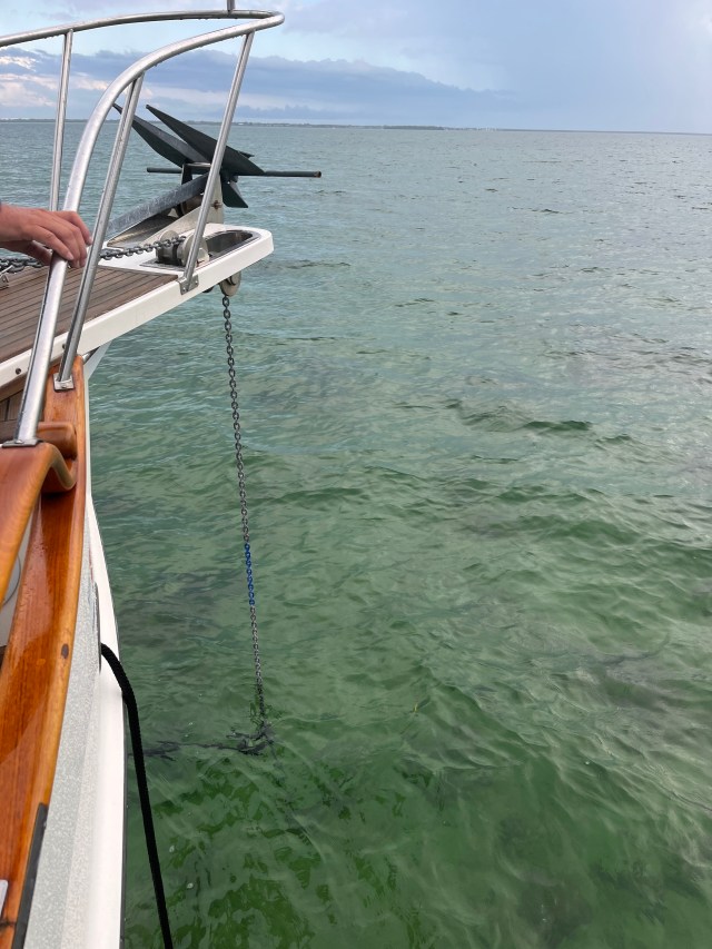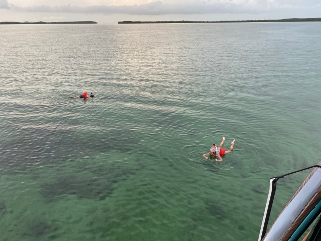 Once we got to the Card Sound, we found our anchor spot, Long Arseniker. This spot isn’t talked about much amongst the Loopers. Not sure why, because it turned out to be a really nice spot. We wished we could have stayed longer than one night because we would have put our paddle boards in. It was very calm and beautiful. Instead, we grabbed our snorkel gear and jumped in. We didn’t see any fish but it was still fun.
