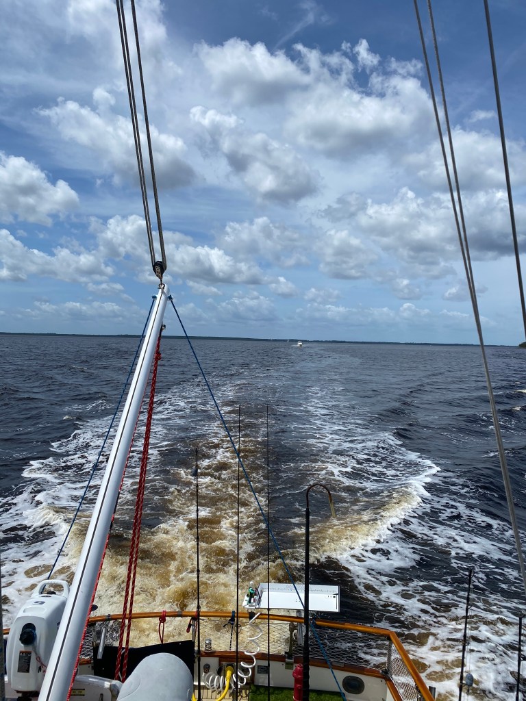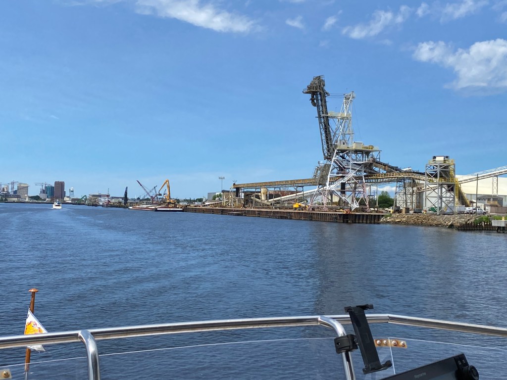 When it was time to leave, we pulled our lines back to the boat and the current gently pulled us away from the wall. And, off we went! The lock transitioned us from salt water to brackish water (mix of salt and fresh water).