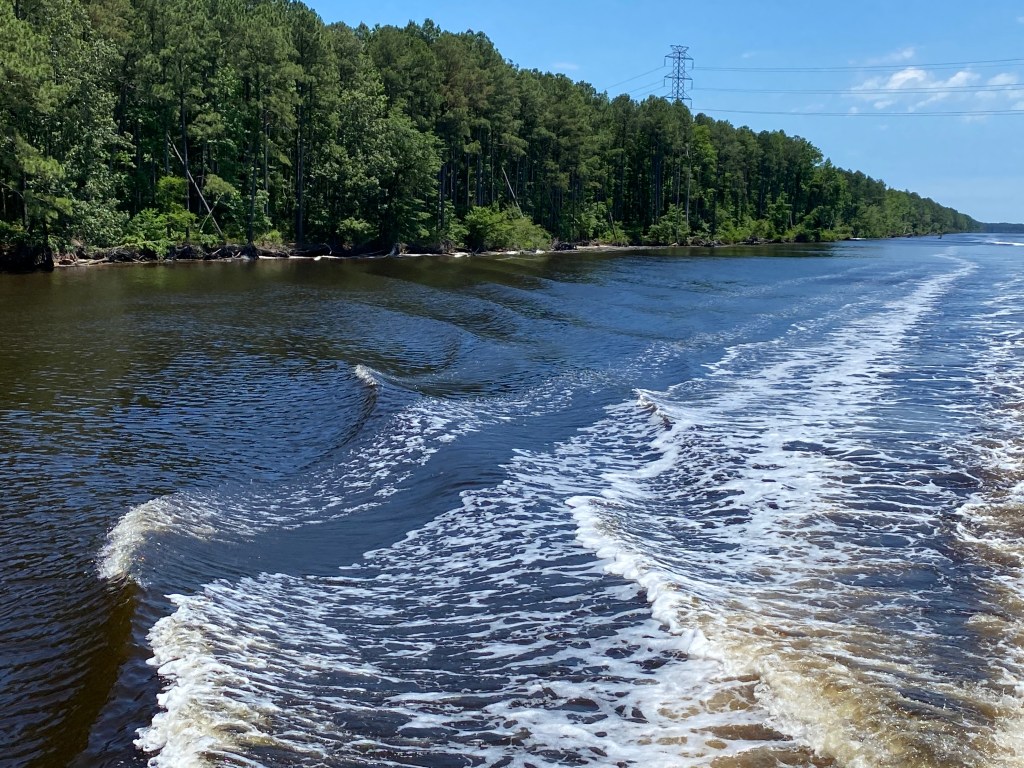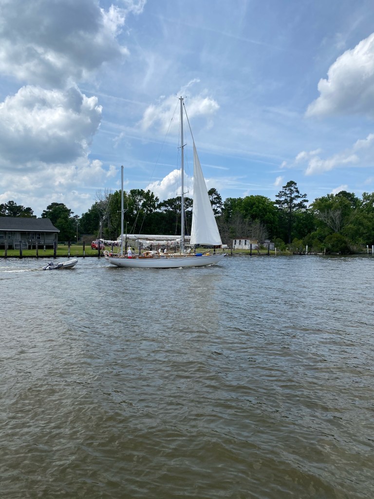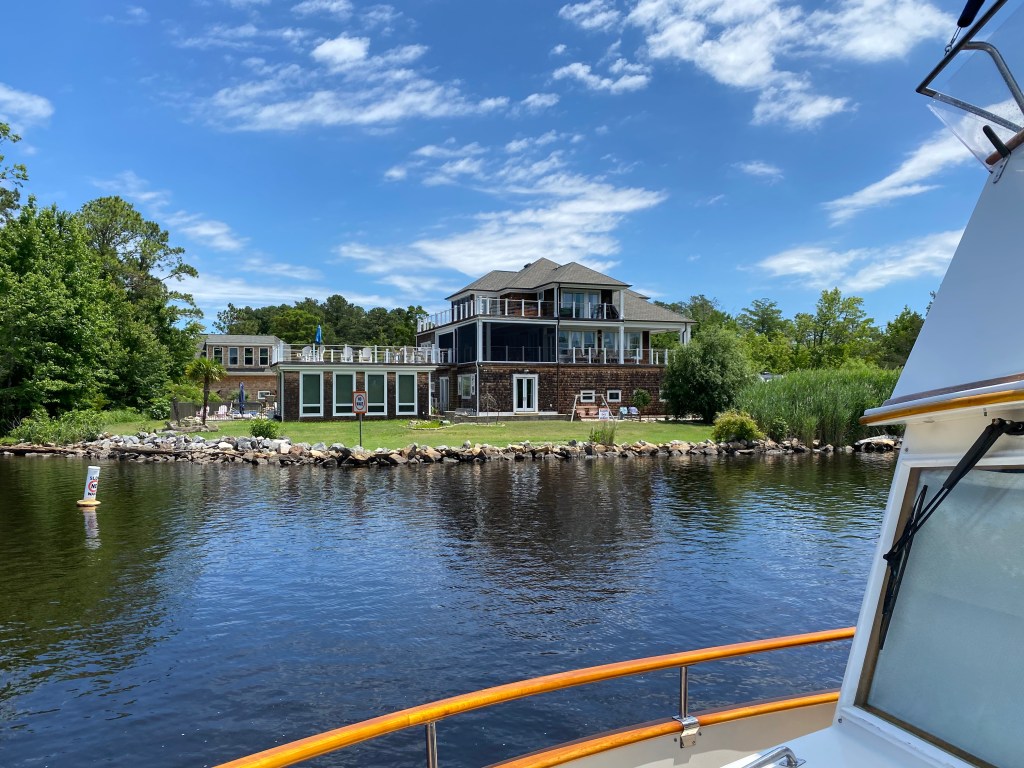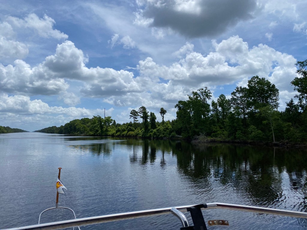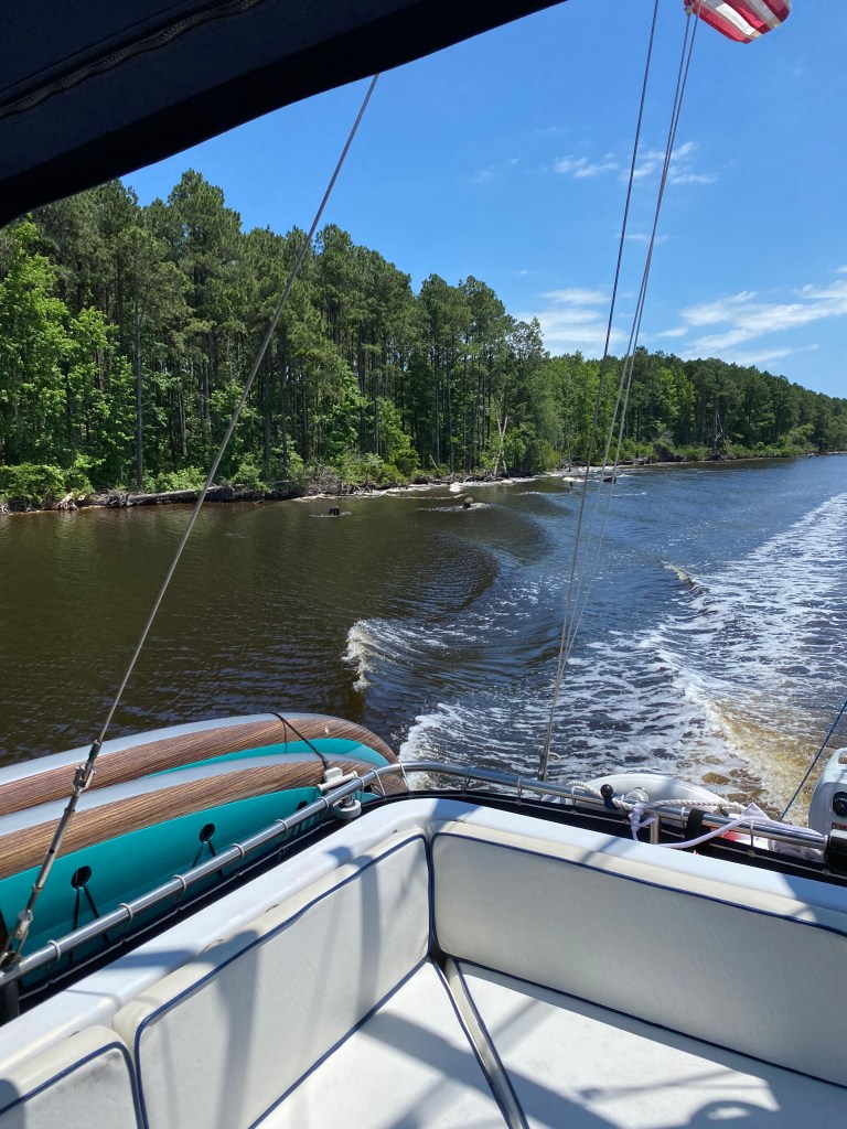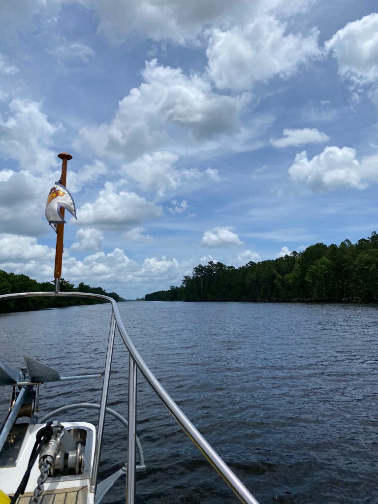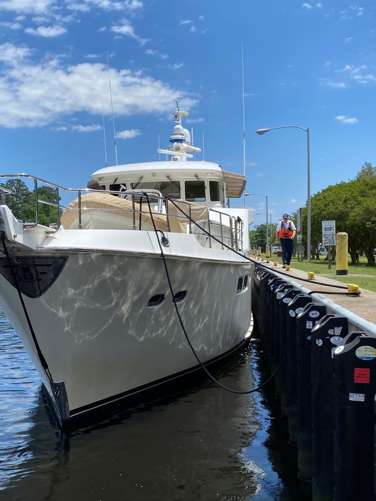 The Great Bridge Lock was a new experience. We watched videos last night and it looked easy. As we approached the lock, we caught up another boat that had experience with the lock. The Lockmaster heard the 3 of us boats discussing the process and joined the conversation. He gave us confidence by telling us our plan was correct. We really did not need to stress over it. It was fun and easy.