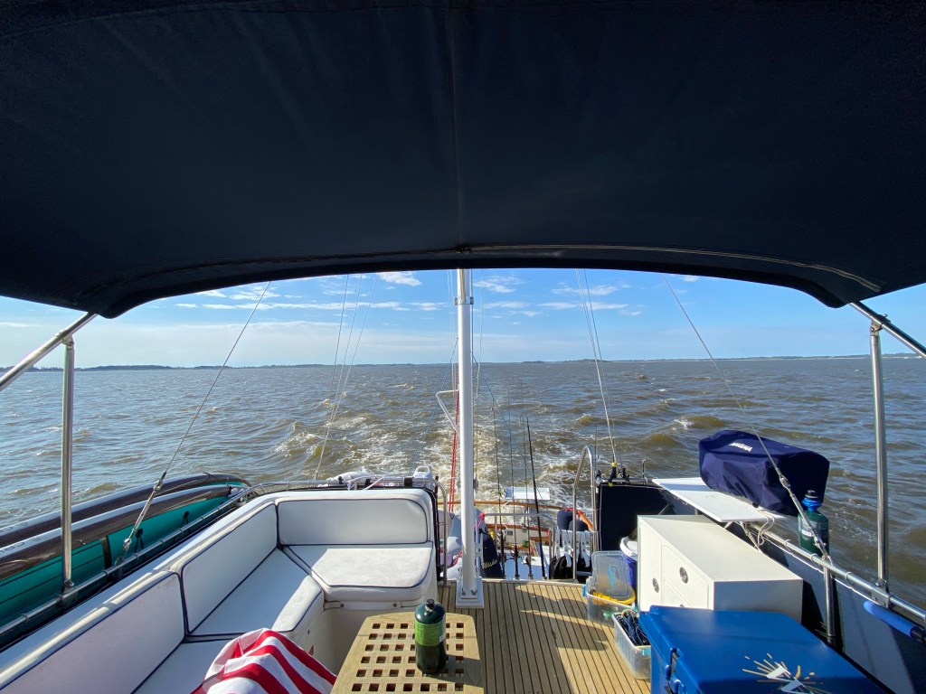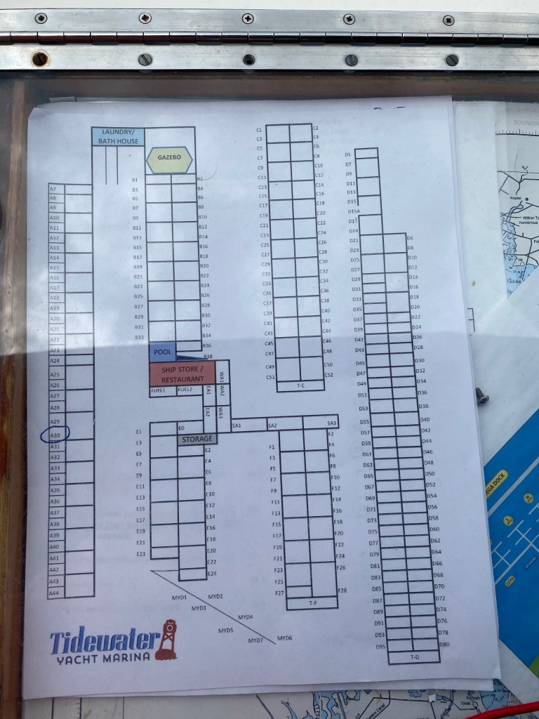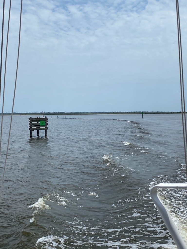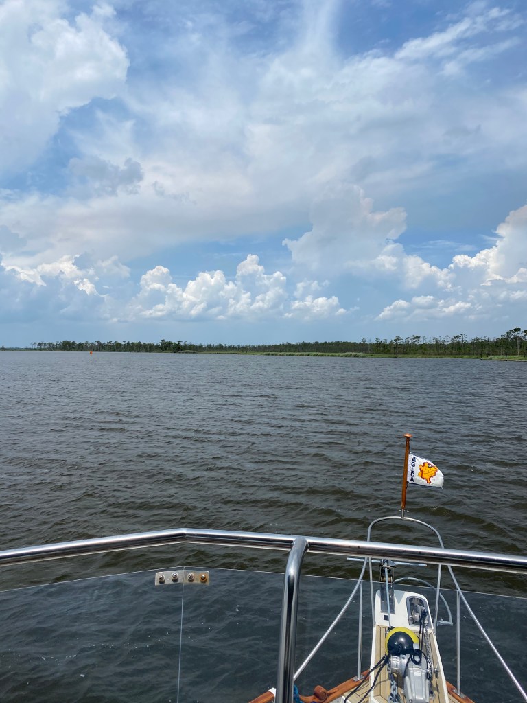 Because the marina ties up the boats so close to each other (the sailboat was almost under our bow anchor), we were a bit nervous leaving in the morning. Fortunately, every boat was gone before we left at 8 am. The dockhands held the line on our bow so we could maneuver the stern out and the current pulled us into the canal. Easy peasy!