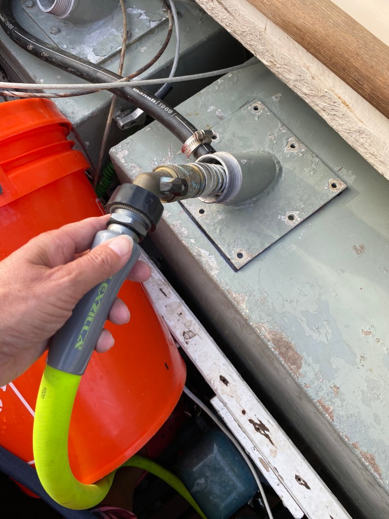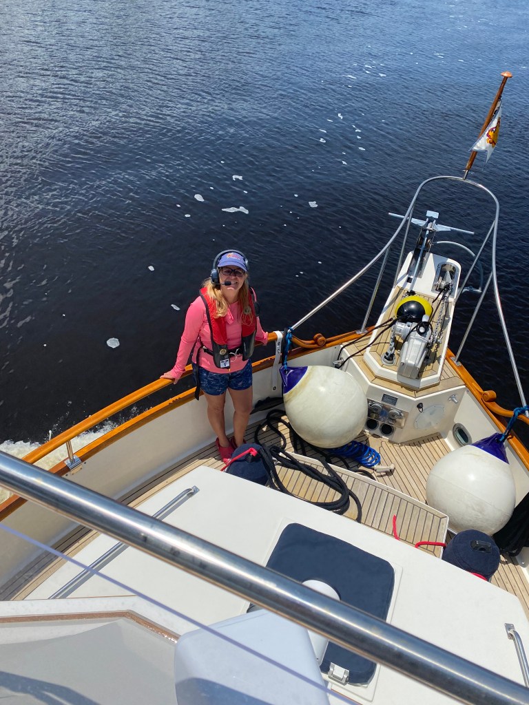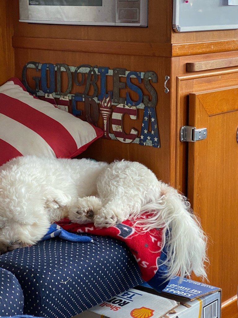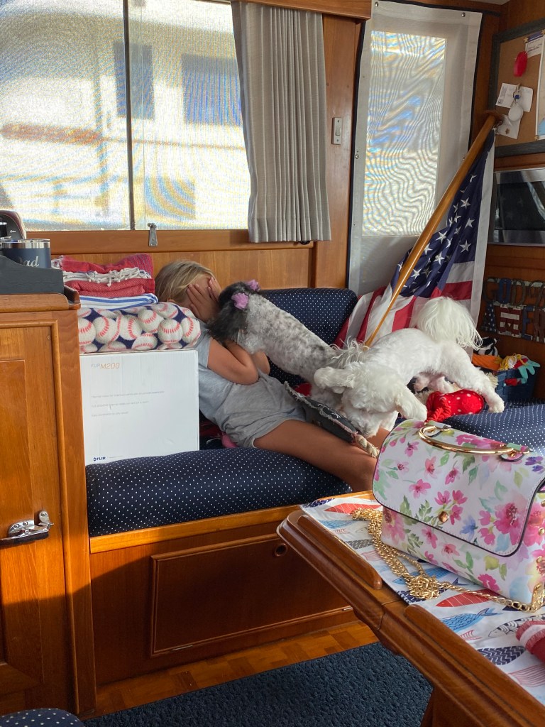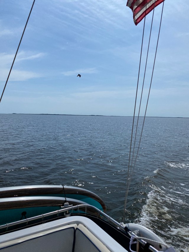 Because the marina ties up the boats so close to each other (the sailboat was almost under our bow anchor), we were a bit nervous leaving in the morning. Fortunately, every boat was gone before we left at 8 am. The dockhands held the line on our bow so we could maneuver the stern out and the current pulled us into the canal. Easy peasy!