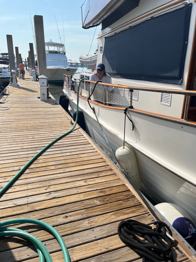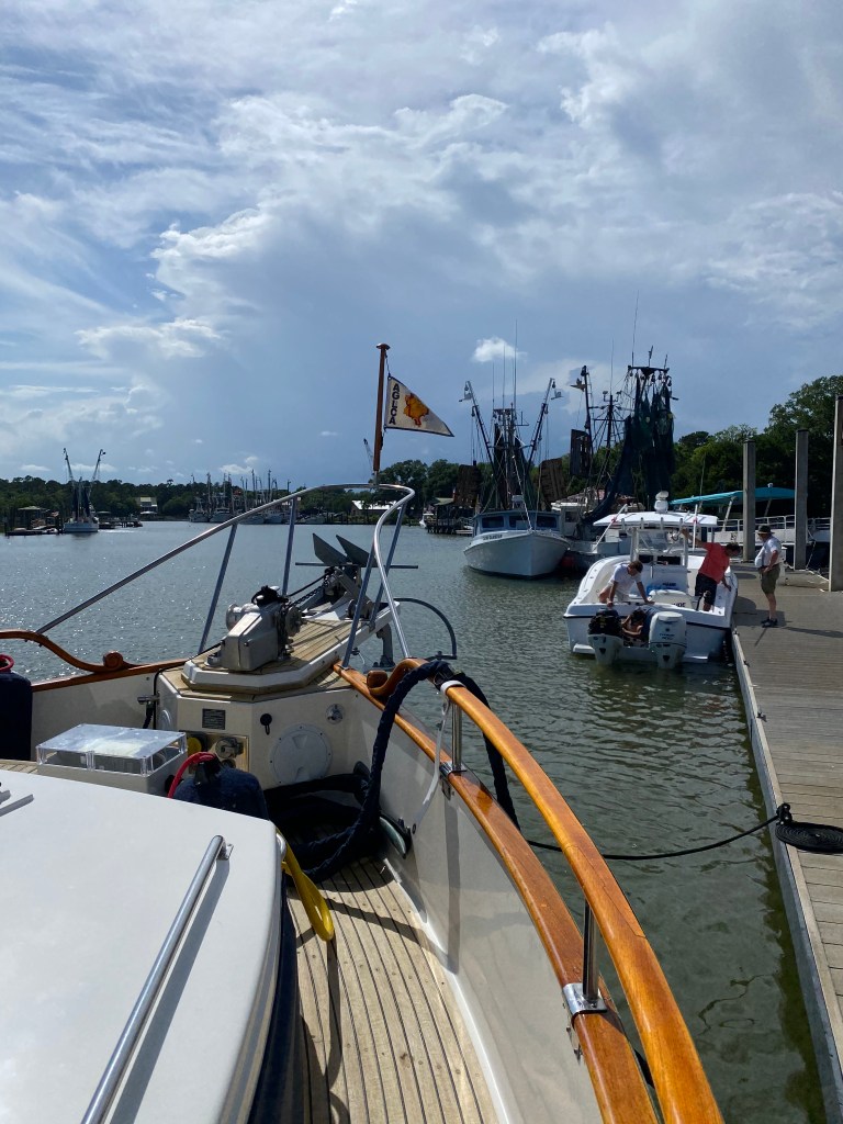 Getting into Harborwalk Marina in Georgetown, SC was easy. It was another parallel parking but there was a wide open spot. Mike backed into the marina, Jen tossed the dock hand a bow line, then Kelly tossed him the stern line. Easy, peasy!