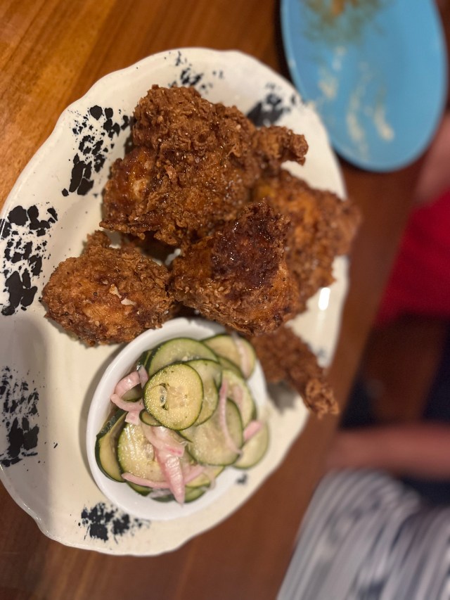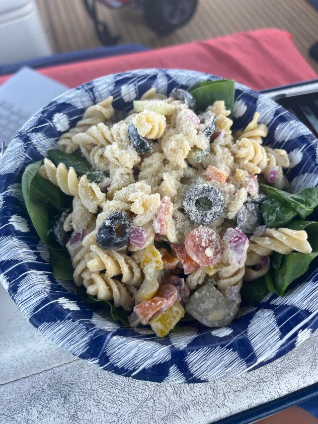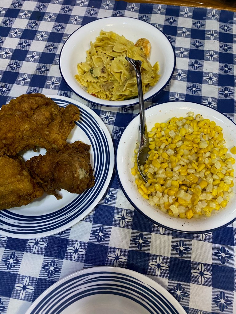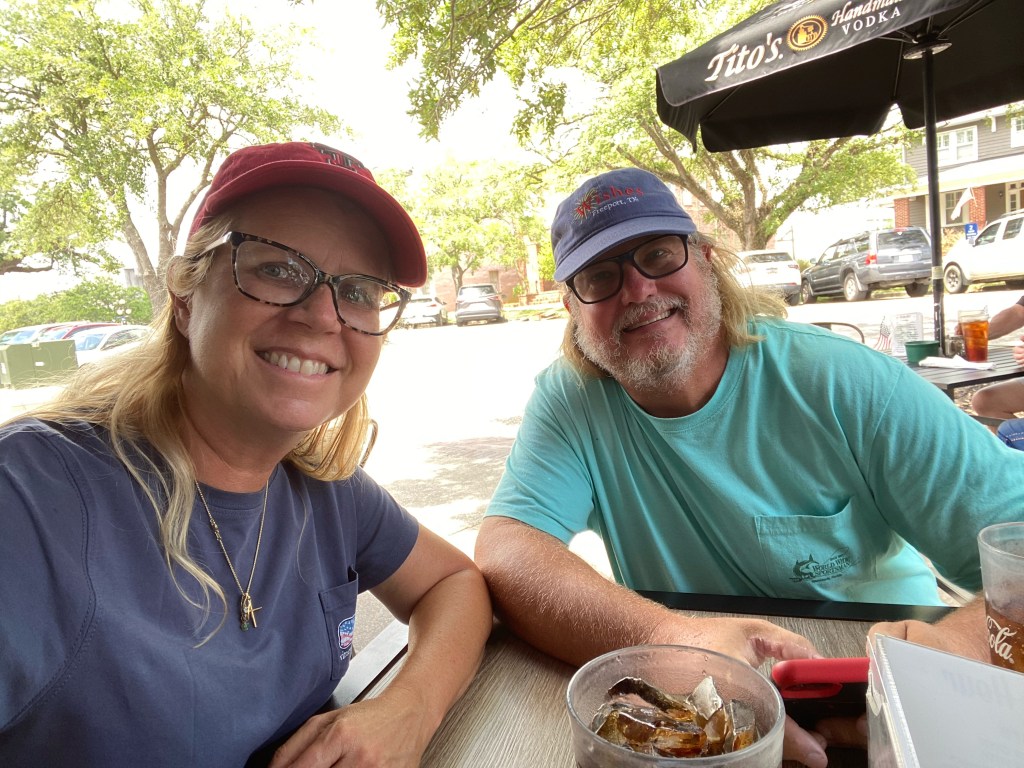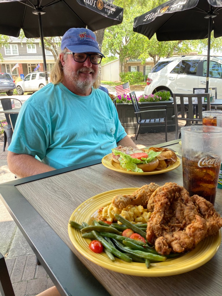 Mike and Kelly had lunch in town which is a short walk. We ate “Soco” outside sideway. It was a perfect lunch. We sat in the shade with a nice breeze. Kelly had southern fried chicken and Mike had a fried bologna sandwich. We really enjoyed the lunch. We discussed that we should do lunch more vs. dinner. It is a lot cheaper and we don’t order expensive alcohol. Kelly still had leftovers.