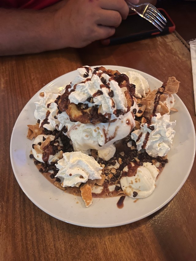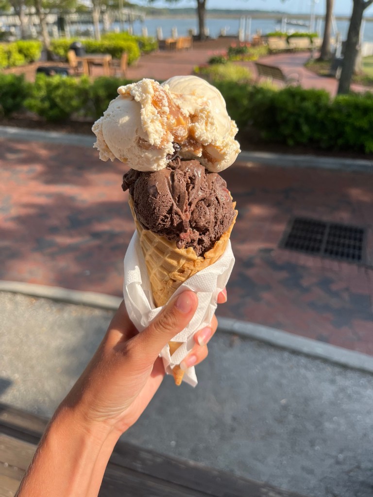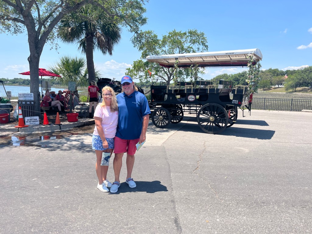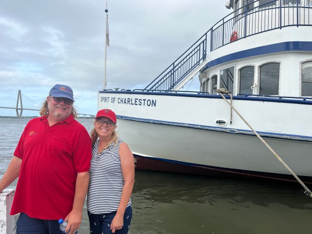 The ferry dropped us off in downtown Charleston so we used the opportunity have dinner in town. We had traditional Southern food at Rudy Royal. Mike and Kelly had fired chicken, they gave it a little twist by deep frying it in honey. Jen had chicken and dumpling, so yummy. After, we went to a desert bar called, Carmella’s Cafe and Desert Bar. We had a waffle sundae called the “Godfather” with cannoli and mascarpone ice cream on a waffle. Loved it!