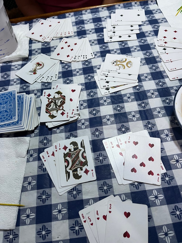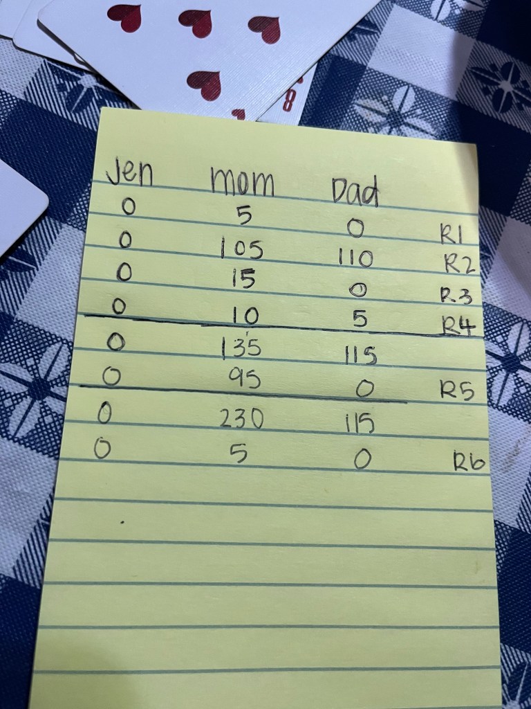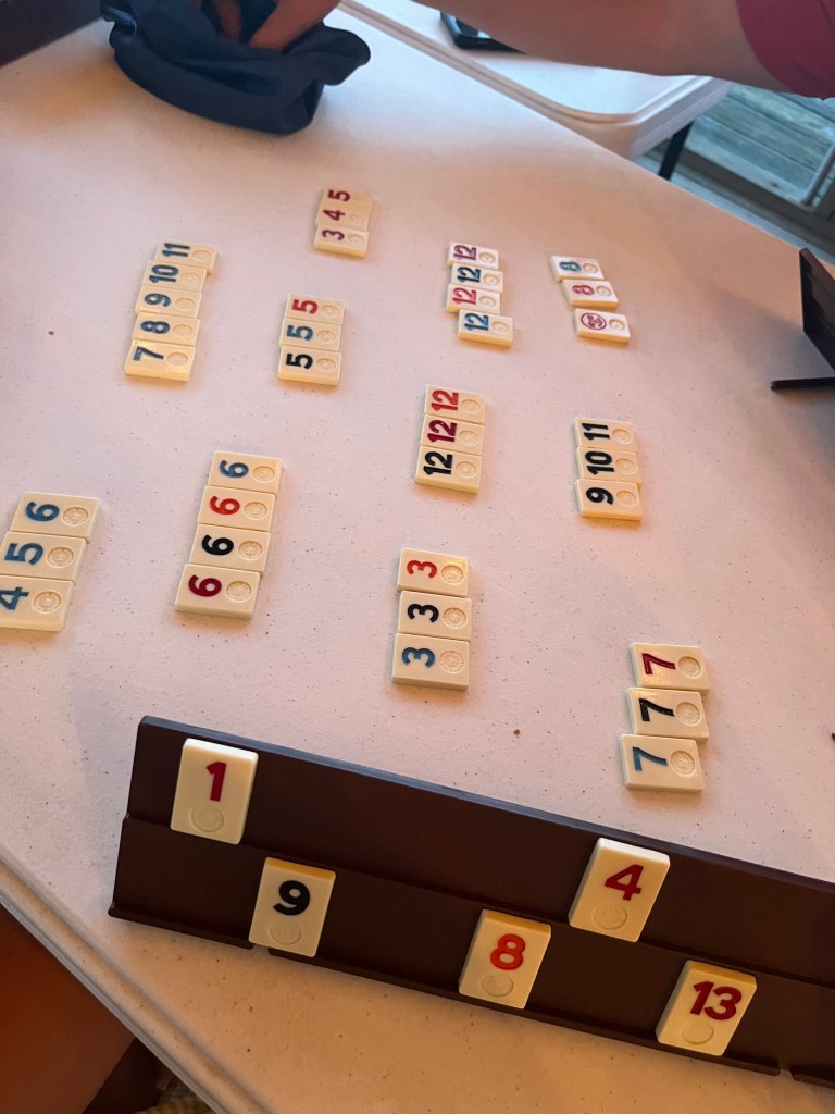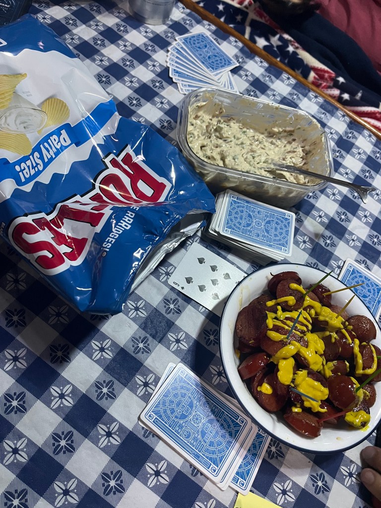 Jen made a bruschetta as a light dinner….we were hungry later and Jen made a french onion dip with cut up brats while we played a card game, Shanghai. We didn’t get to finish the game but Jen is leading