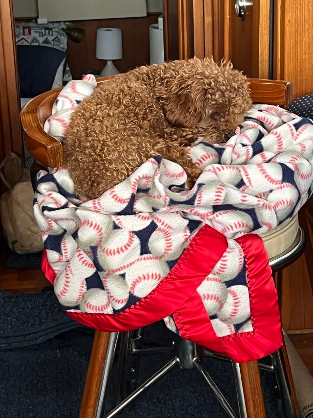 It was a quiet night with no wind or current, hoping for a good night sleep as tomorrow will be a long travel day for our crew mate Jen.