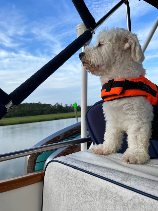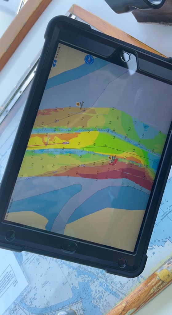 The drive was a bit tricky today. We need to leave at high tide because some of the ICW areas were low on depth. Some areas were as low as 5 feet but with high tide, we had an extra 6-7 feet. Kelly helped closely navigate using “Bob tracks” to guide us.