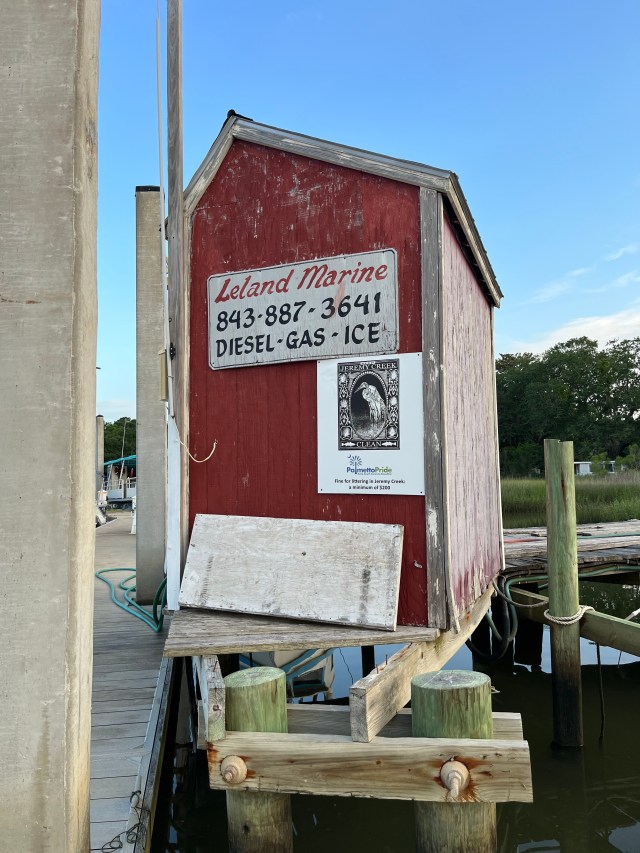 Weather reports showed storms at our destination, Georgetown. We decided to stop 3 hours south of Georgetown at Leland Marina in McClellenville for the night.