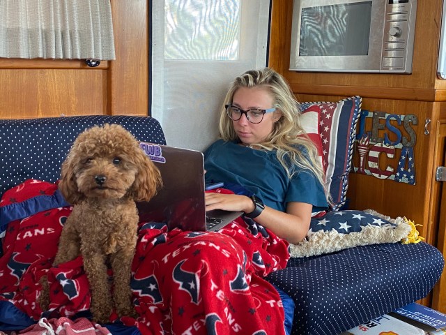 Our friends on Silver Linings arrived later in the day, we helped them with their lines as they came in. Kent did a great job docking while Katie and Ruby were the perfect deck hands.