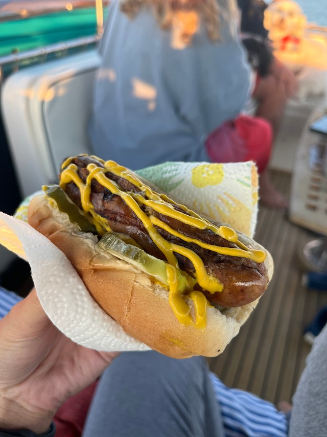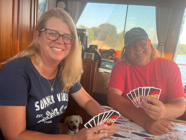 Lenny, the marina owner offered to take Mike, Jen and Katie to the grocery store. We were able to stock up on a few things, as well as get hamburgers and hot dogs to grill on the 4th of July… and the essentials, beer and liquor.